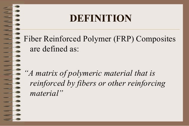 Fibre reinforced polymer (frp) composite is defined as a polymer that is reinforced with fibre.